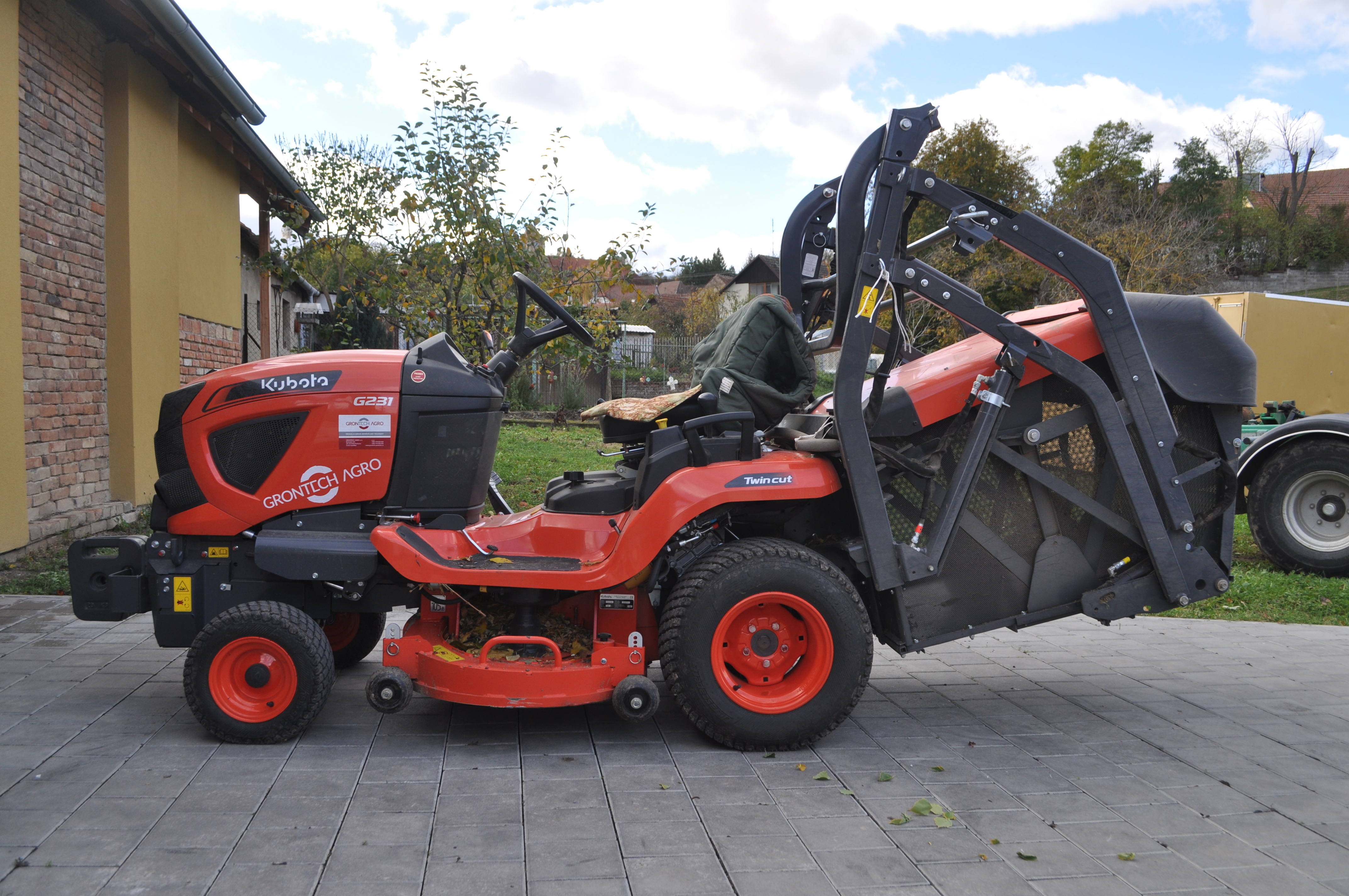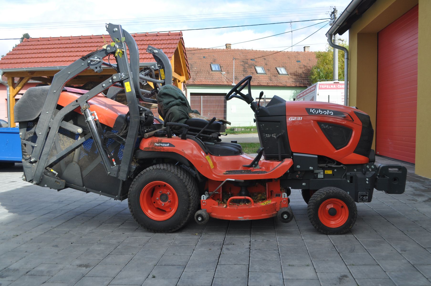 Získali jsme zdatného pomocníka při údržbě obecních pozemků. Traktorová sekačka Kubota G231HD umí samozřejmě sekat trávu, sbírat posekanou trávu do koše a výborně se dá využít na sběr spadaného listí. Velkou výhodou je objemný sběrný koš (640 l) vyprazdňovaný hydraulickým zvedacím zařízením až do výšky 1,9 m. Trávu nebo listí lze tudíž rychle a bez námahy sypat přímo do připraveného kontejneru s vysokými bočnicemi.